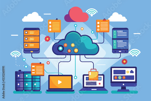 A cloud network integrates various devices for automated data backup and efficient storage solutions, the system automatically backs up data with the cloud