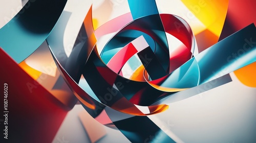 A collection of geometric shapes in motion, intertwined with colorful swirls, representing the complexity and fluidity of thought.
