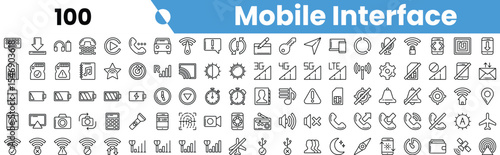 A collection of outline icons for mobile interface design, showcasing diverse functions and features in a modern style.