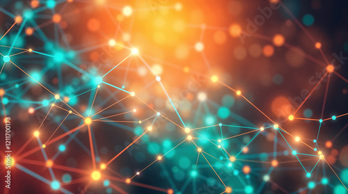 A colorful, abstract image of lines and dots that appear to be connected in a web-like pattern. Plexus style