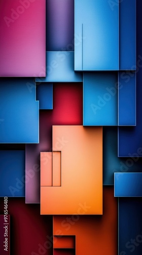 A colorful collage of squares and rectangles with a blue square in the middle. The squares are of different colors and sizes, and the blue square is the only one that is not a rectangle