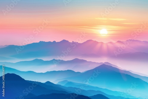A colorful double exposure of mountains in the sunrise. A minimalist scene with color gradients. Tatra mountains in Slovakia, Europe.
