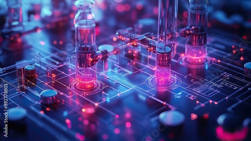 A colorful flow chart in digital format represents the management process in a lab created with advanced technology.