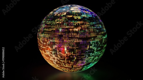 A colorful sphere enriched with complex futuristic digital code in a realistic setting