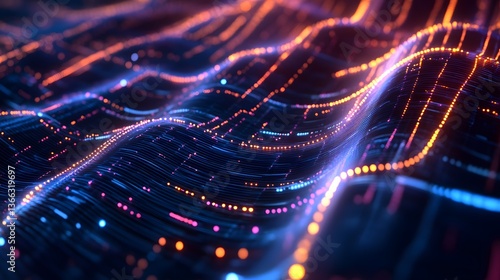 A complex abstract data visualization that captures the essence of interconnected networks and digital information.