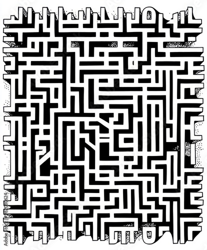 A complex black-and-white maze design for puzzle-solving and visual engagement.