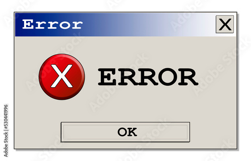 A computer error box with a generic message (unknown bug). Original design, isolated.