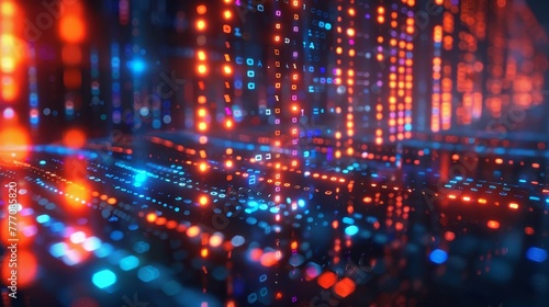 A computer generated image of a cityscape with a blue and orange background. The image is full of bright lights and has a futuristic feel to it