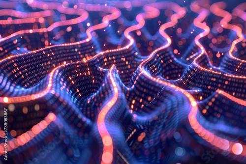 A computer generated image of a wave of binary code