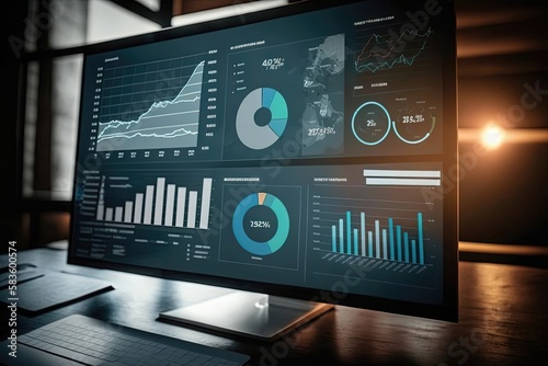 A computer monitor displaying various data visualizations and analytics, conveying a sense of efficiency and productivity. Generative of AI