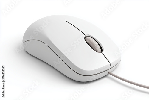 A computer mouse with a scroll wheel, 3D render, isolated on a white background.