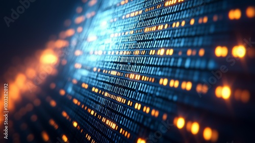 A computer screen with a blue background and orange and yellow lines