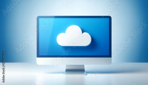 A computer screen with a cloud icon at the top, representing cloud computing and storage.