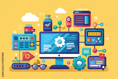 A computer setup showcases a customizable application programming interface, illustrating various tools and metrics for software development and programming activities
