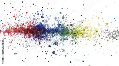 A conceptual image of data mining represented by colorful binary codes and graphs.