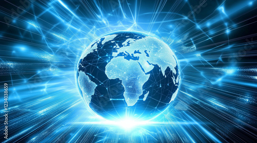 A conceptual vector image of a world globe connected by abstract network lines, representing global internet connectivity.