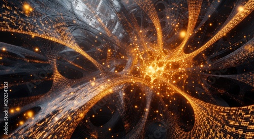 A conceptual visualization of an AI neural network, with glowing data streams forming intricate patterns and connections Generative AI