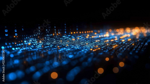 A creative binary coding texture with flowing software programming code rendered in 3D minimalistic bright light tones and blurred background with empty space for captions