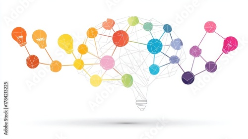 A creative mind map chart clipart, brainstorming process element, colorful connected nodes, flat design, isolated on white background.