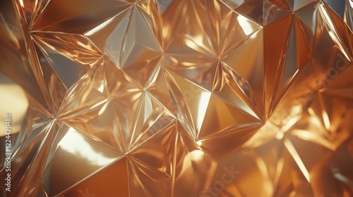 A creative scene featuring sharp, metallic 3D triangles creating an abstract geometric pattern, with soft lighting highlighting the edges.
