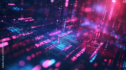 A cyber-inspired backdrop with floating digital code and holographic user interface elements.