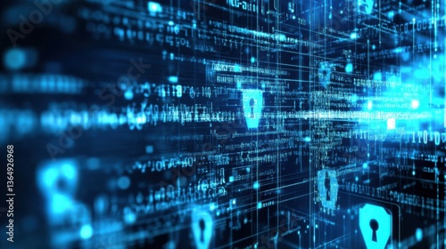 A cybersecurity analyst creating encryption algorithms for data protection, office with encryption software and security interfaces visible, High-tech style