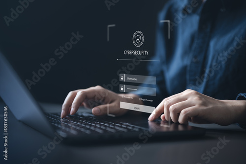 A cybersecurity login concept featuring a digital authentication interface with username and password fields, representing data protection, secure access, encryption, and online identity security.