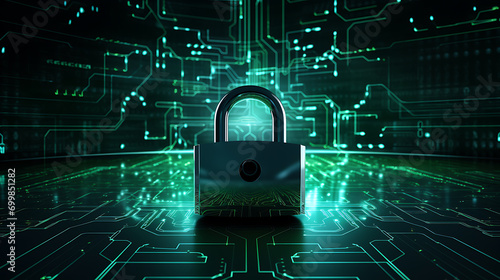 A cybersecurity shield icon surrounded by binary code,