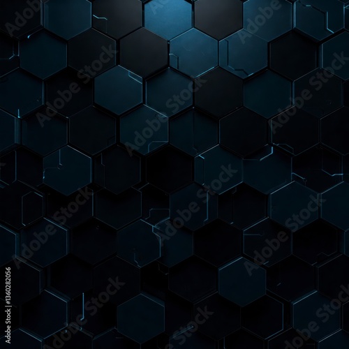 A dark abstract background with a honeycomb pattern.