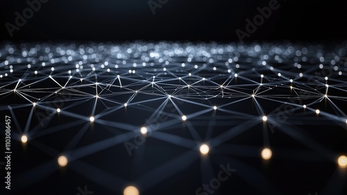 A dark background with a web of bright interconnected lines and nodes, resembling a digital or technological network.