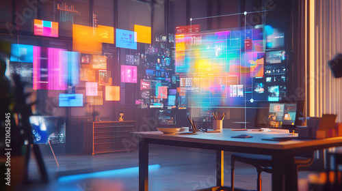A designers workspace with holographic mood boards