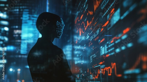 A digital asset manager creating AI powered predictive analytics tools for cryptocurrency price forecasting, futuristic finance lab with real-time market data, High-tech style