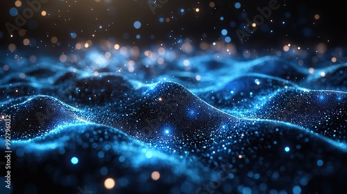 A digital background with blue particles represents the intersection of technology and data in a 3D rendering.