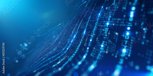 A digital big data and binary data flow or stream background with technology lines. Big data technology, transferring datum, artificial intelligence, machine learning, speed transfer concepts.
