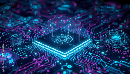 A digital blue computer circuit board design is a technological marvel of interconnected components and electronic processors