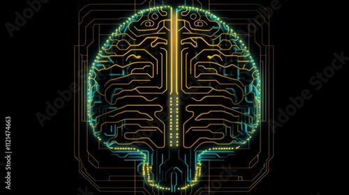 A digital brain design with circuit patterns, symbolizing technology and artificial intelligence.