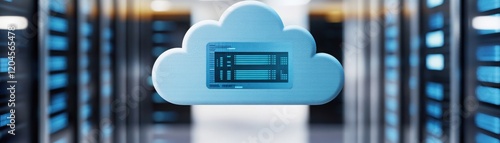 A digital cloud icon representing data storage and server connectivity in a tech environment.