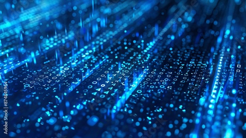 A digital concept of technology with random fragments of programming code in a blue binary background.