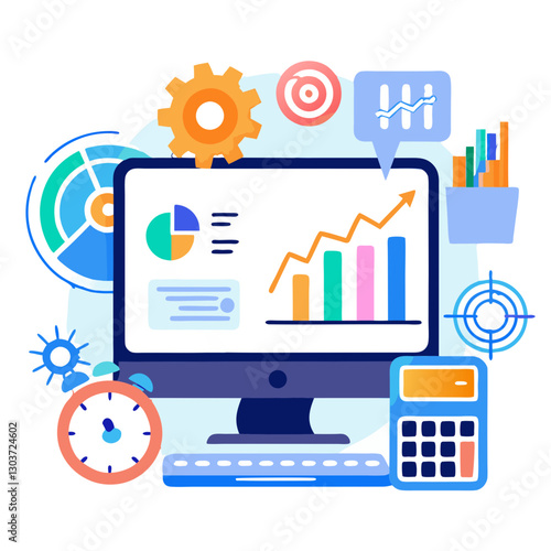 A digital dashboard showcases key performance indicators with graphs, charts, and analytics tools to track business performance efficiently. Data visualizations support informed decision-making