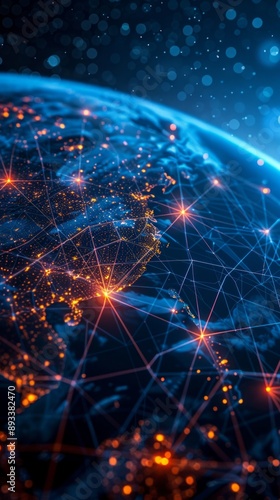 a digital image of a network or web, possibly internet connectivity and neural pathways. It shows many interconnected lines and nodes creating a complex grid. futuristic and high-tech.