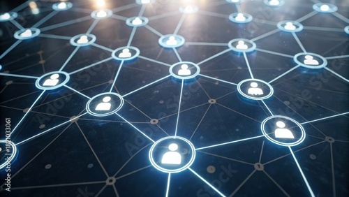 A digital network visualization depicting interconnected user icons, symbolizing social connections and digital communication.