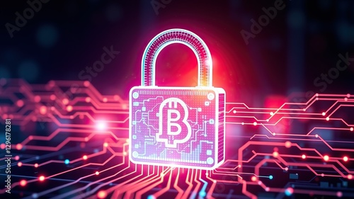 A digital padlock with blockchain technology elements, symbolizing secure transactions