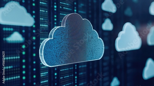 A digital representation of a cloud integrated with data patterns, symbolizing cloud computing and data storage technology.