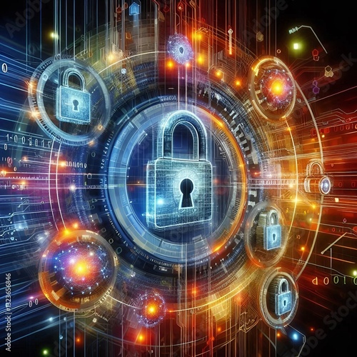 A digital shield featuring a cybersecurity locks, symbolizing security and protection