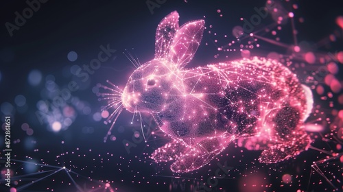A digital technology inspired easter greeting card with a bunny and an easter egg. The illustration has an effect of light.