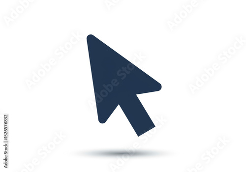 A digitally rendered dark blue cursor pointing upwards on a clean white background with a soft shadow