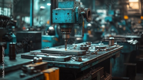 A Drill Press Operating in a Factory Setting