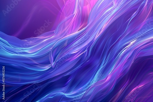 A dynamic drapery background with flowing abstract shapes, vibrant gradients of blue and purple, soft lighting creating depth and shadows. Neural network ai generated art