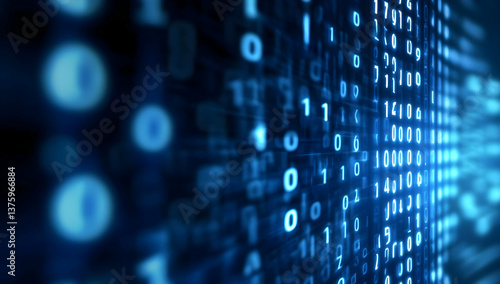 A dynamic representation of binary code flowing, illustrating the essence of digital technology and data security.