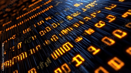 A dynamic representation of binary code flowing in a digital environment. This image captures the essence of data processing and the power of technology in modern communication.
